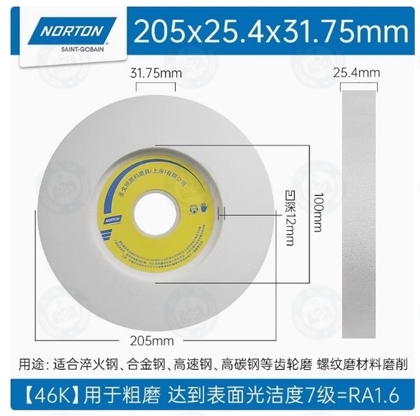 "诺顿 白色砂轮片小磨床砂轮单面凹205*25.4*31.75(46目)厚度25.4"商品可能已被商家删除,您可查看其他相似商品!