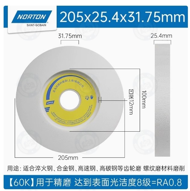 "诺顿 白色砂轮片小磨床砂轮单面凹205*25.4*31.75(60目)厚度25.4"商品可能已被商家删除,您可查看其他相似商品!