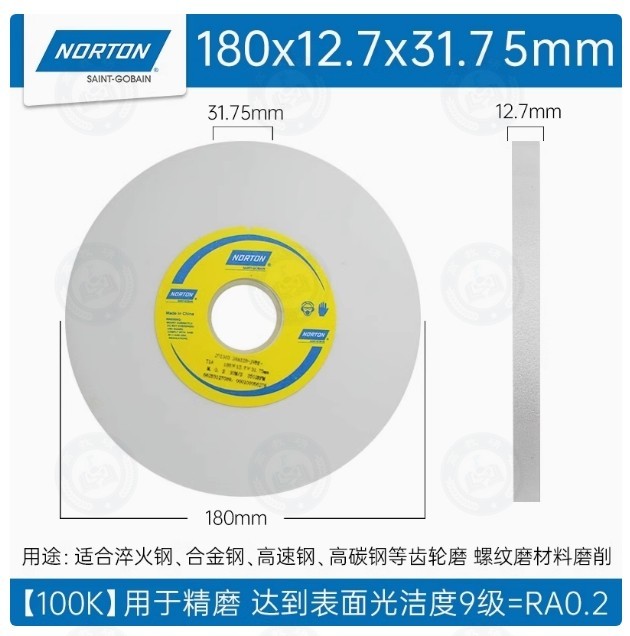 "诺顿 砂轮白刚玉沙轮618平面小磨床手摇砂轮片180*12.7*31.75 38A100K(白色)"商品可能已被商家删除,您可查看其他相似商品!