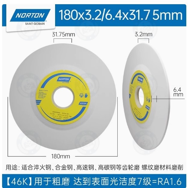"诺顿 白色砂轮片小磨床砂轮180*3.2/6.4*31.75 38A46K单面凸"商品可能已被商家删除,您可查看其他相似商品!