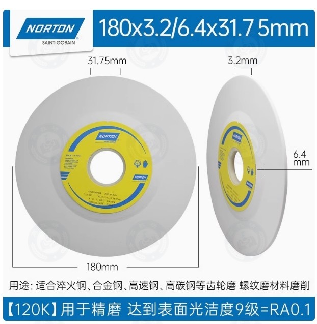 "诺顿 白色砂轮片小磨床砂轮180*3.2/6.4*31.75 38A120K单面凸"商品可能已被商家删除,您可查看其他相似商品!