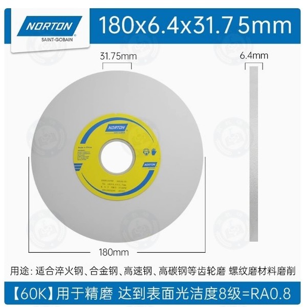 "诺顿 白色砂轮片小磨床618手摇白刚玉清角窄槽沙轮180*6.4*31.75 38A60K"商品可能已被商家删除,您可查看其他相似商品!