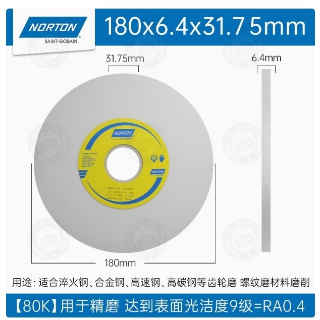 "诺顿 白色砂轮片小磨床618手摇白刚玉清角窄槽沙轮180*6.4*31.75 38A80K"商品可能已被商家删除,您可查看其他相似商品!