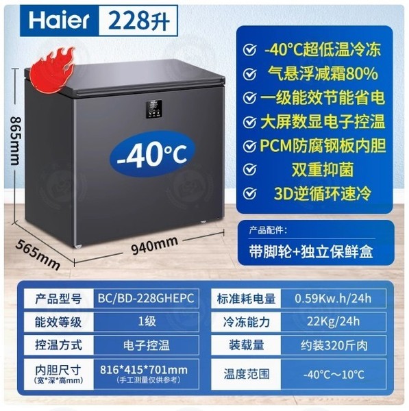 "海尔 冰柜超低温卧式冷藏冷冻柜BC/BD-228GHEPC 228升星蕴银-40度超低温/电子控温"商品可能已被商家删除,您可查看其他相似商品!