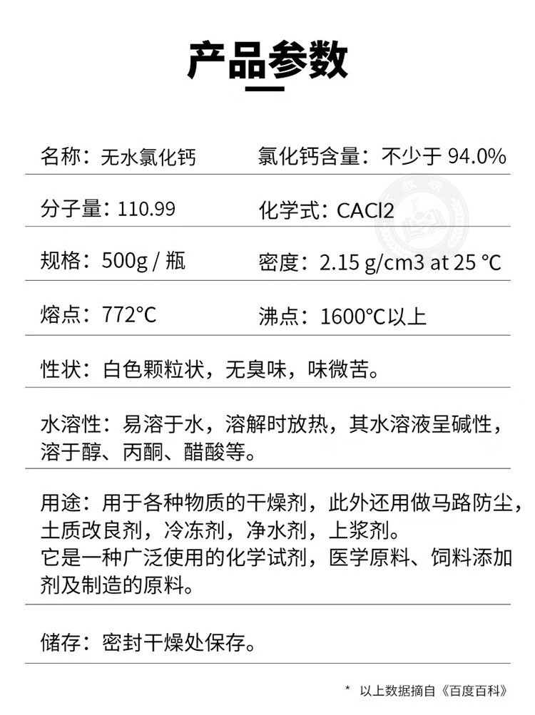 "环潮威 无水氯化钙颗粒 干燥剂分析纯AR化学实验剂 500克"商品可能已被商家删除,您可查看其他相似商品!