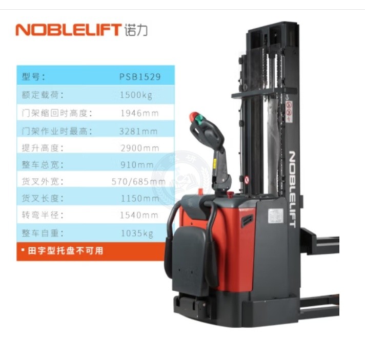 "诺力 PSB1529全电动堆高叉车 载重1.5吨升高2.9米 站驾式升高托盘堆垛升降车"商品可能已被商家删除,您可查看其他相似商品!