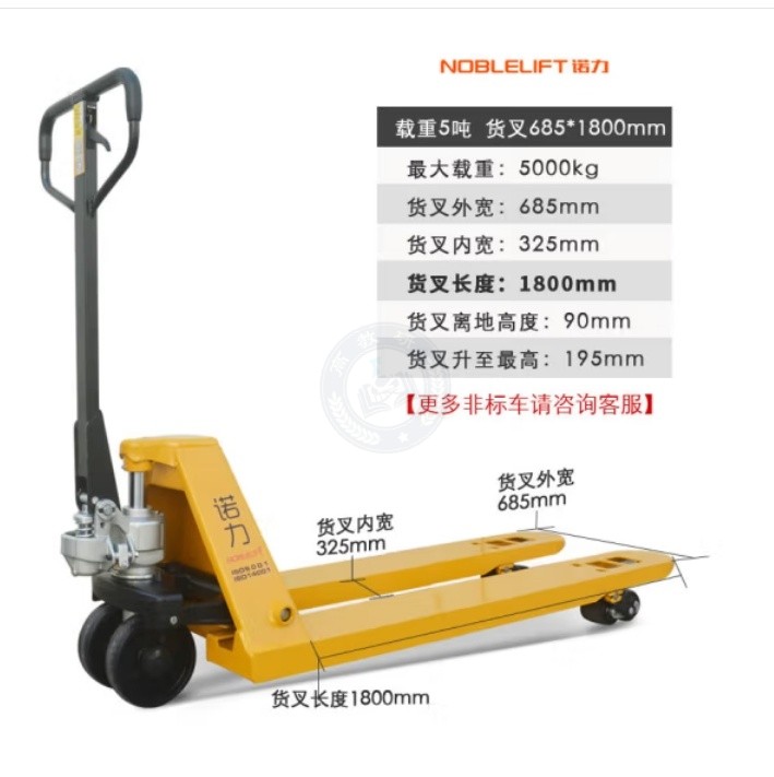 "诺力 CBK50 手动加长叉车 5吨外宽685叉长1800mm液压地牛托盘手拉搬运车"商品可能已被商家删除,您可查看其他相似商品!