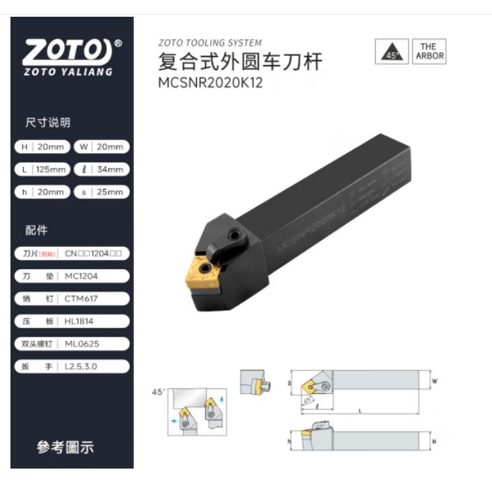 "ZOTO 数控刀杆 复合式外圆车刀杆 MCSNR2020K12(正刀)"商品可能已被商家删除,您可查看其他相似商品!