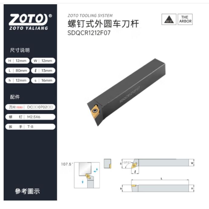 "ZOTO 数控刀杆 螺钉式外圆车刀杆 SDQCR1212F07(正刀)"商品可能已被商家删除,您可查看其他相似商品!