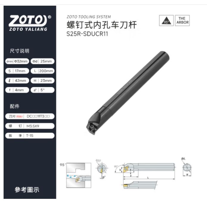 "ZOTO 数控刀杆 螺钉式内孔镗孔圆车刀 S25R-SDUCR11(正刀)"商品可能已被商家删除,您可查看其他相似商品!