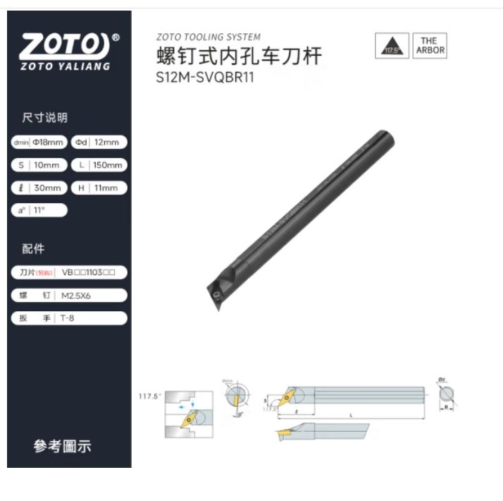 "ZOTO 数控刀杆 螺钉式内孔镗孔圆车刀 S12M-SVQBR11(正刀)"商品可能已被商家删除,您可查看其他相似商品!