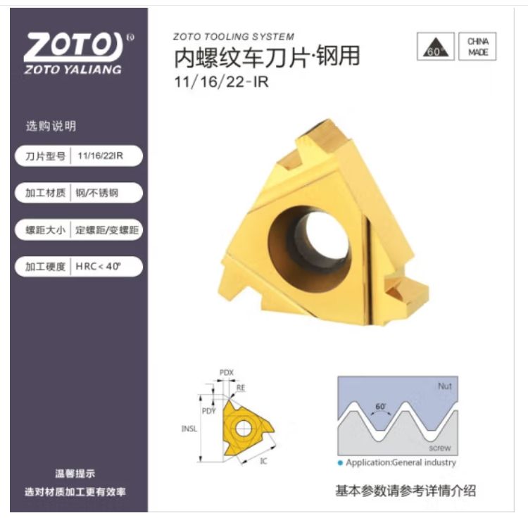 "ZOTO 数控刀具 内孔螺纹车刀片 定变螺距牙型 钢用(ZTX300)08IR-A60"商品可能已被商家删除,您可查看其他相似商品!