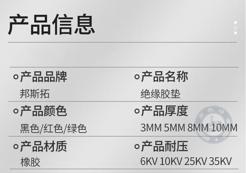 "邦斯拓 绝缘胶垫平面胶皮垫 3mm厚黑色(1米*1米)5KV"商品可能已被商家删除,您可查看其他相似商品!