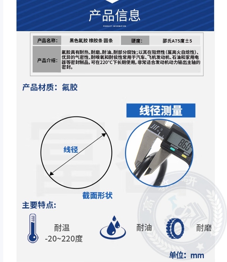 "富密 黑色氟胶条 实心密封圆条 O型条橡胶条 氟胶3.5mm/5米"商品可能已被商家删除,您可查看其他相似商品!