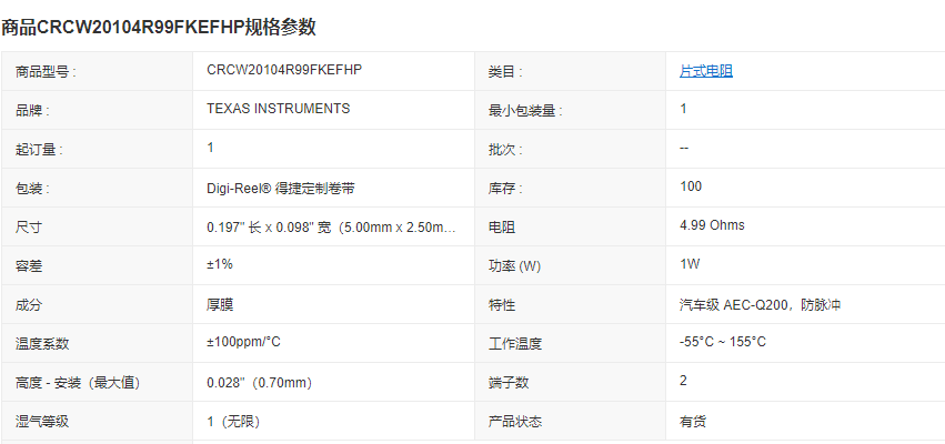 "厚膜片式电阻CRCW20104R99FKEFHP"商品可能已被商家删除,您可查看其他相似商品!