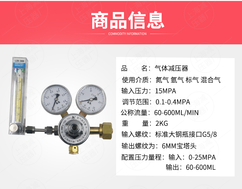 "上海减压器厂 氮气流量调压阀转子毫升可选流量计减压器 40-400ml/min YQSZB-731L-400ml"商品可能已被商家删除,您可查看其他相似商品!