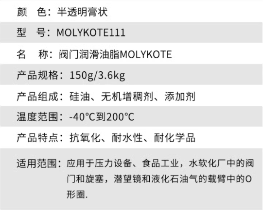 "MOLYKOTE/摩力克 DC111阀门密封硅脂油"商品可能已被商家删除,您可查看其他相似商品!