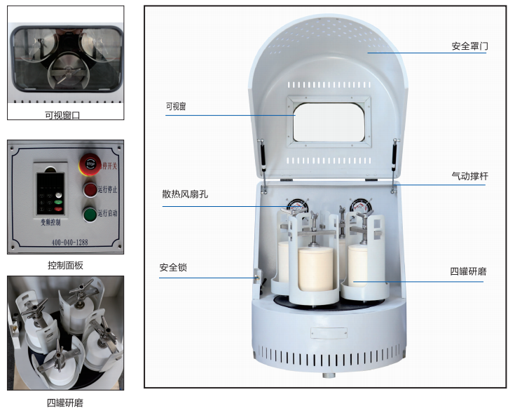 4、四个工作位,每次最多可研磨四种不同种类、不同质量的物料