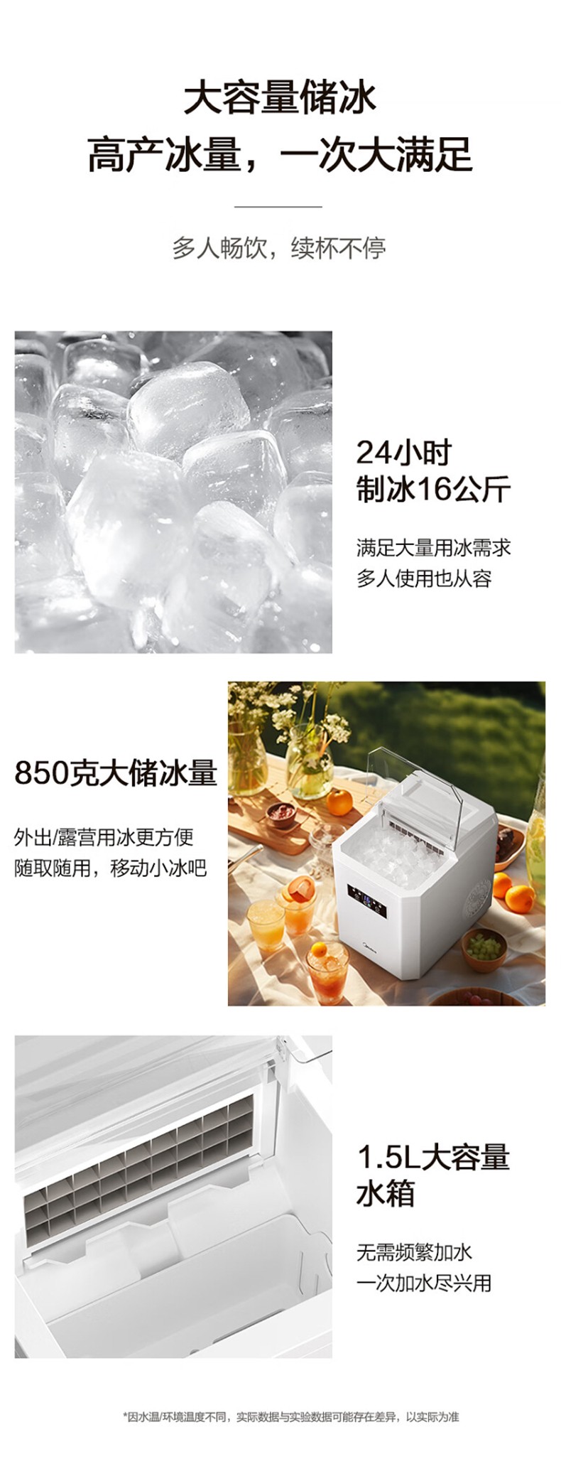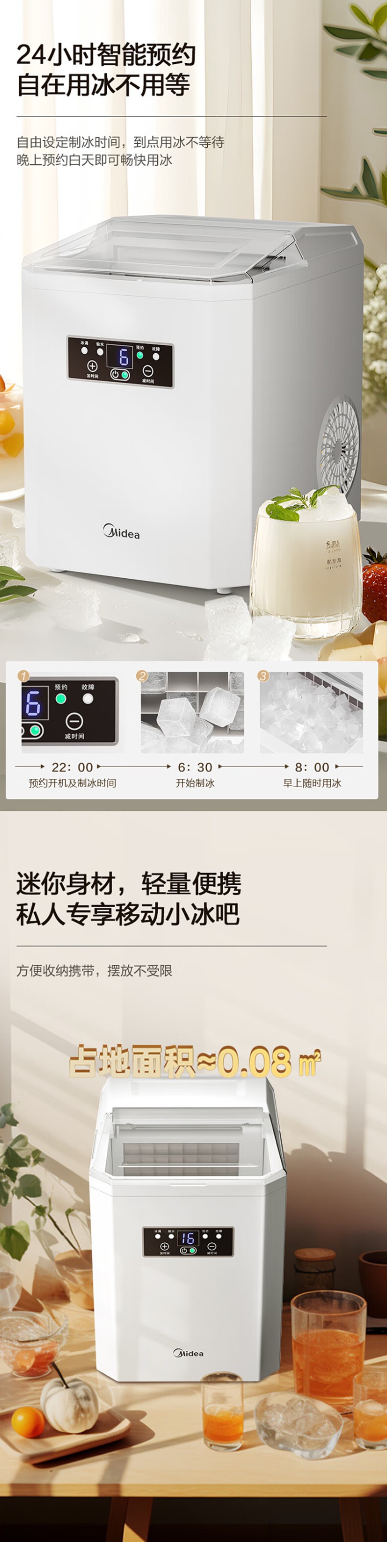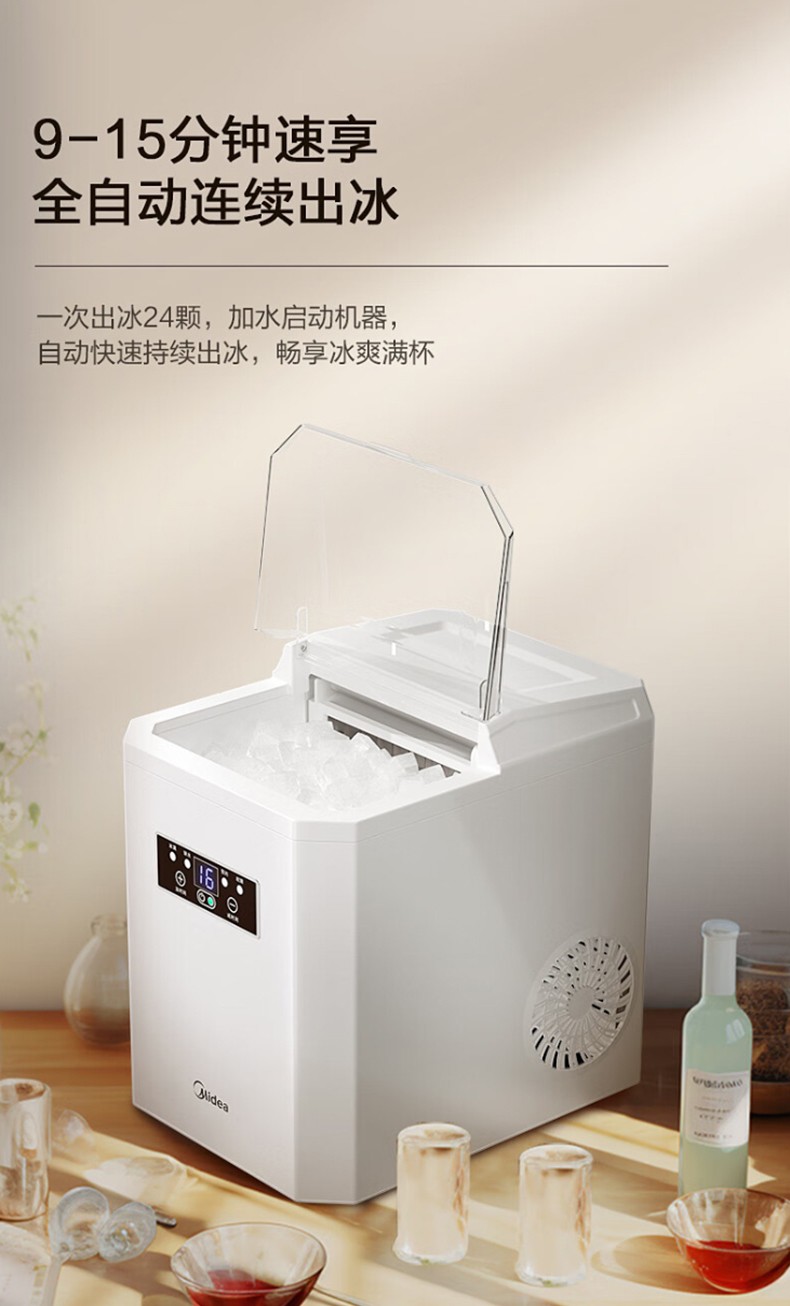 美的 家用子弹头制冰机,MBJ-20F11E ,日制冰量16kg,储冰量850g,功率130W 售卖规格:1台