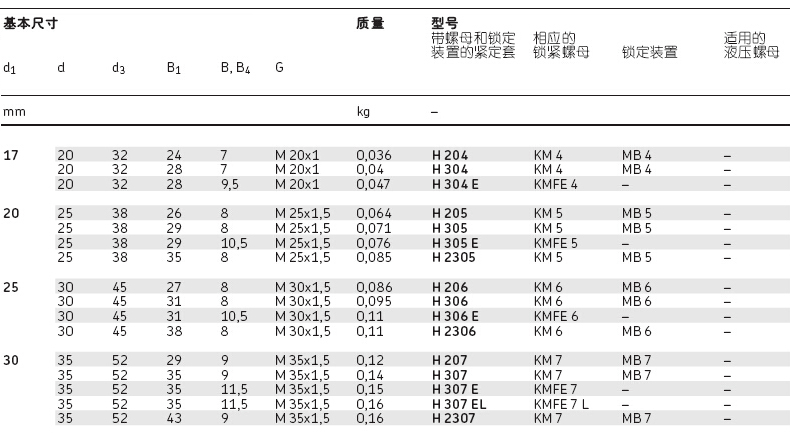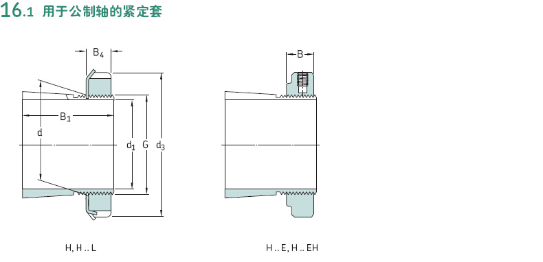 紧定套是最常用的轴承附件之一,用于将圆锥孔轴承固定在圆柱形的轴颈上:包括光轴或阶梯轴。这种附件的安装简易,并且无需利用其它装置将其固定。在光轴上使用时,轴承可以固定在轴上的任何位置。在阶梯轴上使用紧定套时,与 L 形隔环配合使用,可以将轴承更精确地固定在轴上的给定位置,因此便于轴承的安装和拆卸。 |