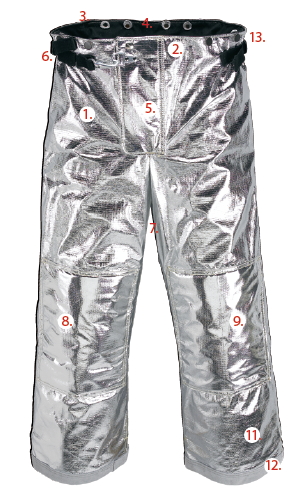外层面料:Aluminized PBI®---- 镀铝PBI/Kevlar防撕裂网格状编织,7.0盎司每平方码重,高热稳定