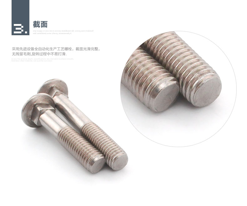 应用于槽内,四方颈在安装的过程中卡在槽内,可以起防止螺栓转动,马车螺栓可以在槽内平行移动。由于马车螺栓的头呈圆形,没