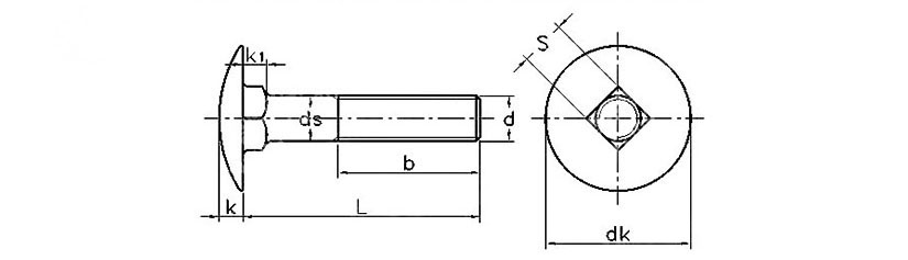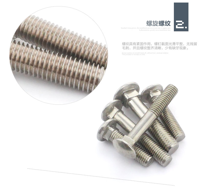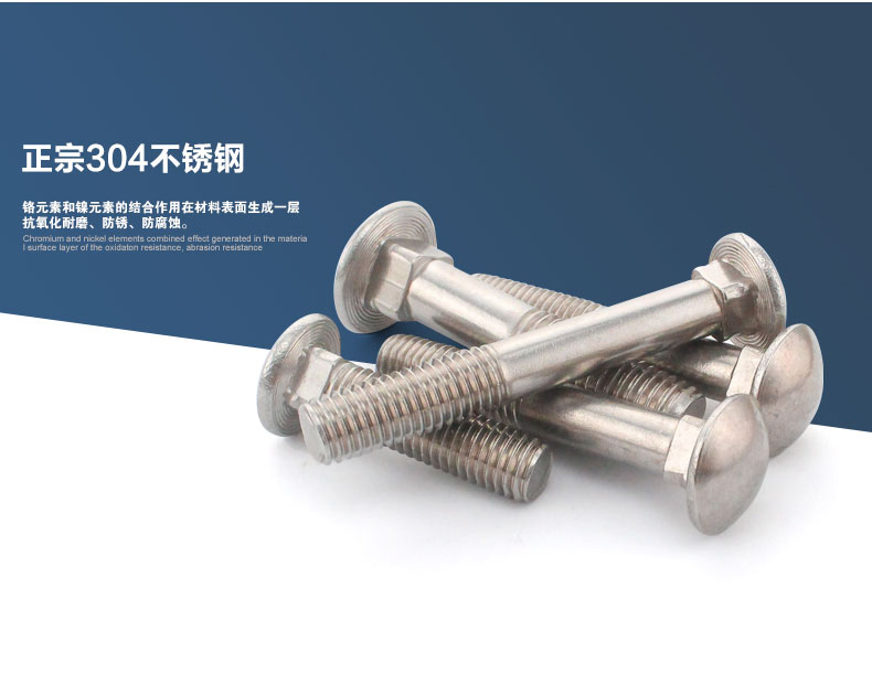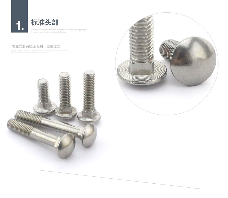 马车螺栓按头部大小分为大半圆头马车螺栓(对应标准GB/T14和DIN603),小半圆头马车螺栓(对应标准GB/T12-85)。马车螺