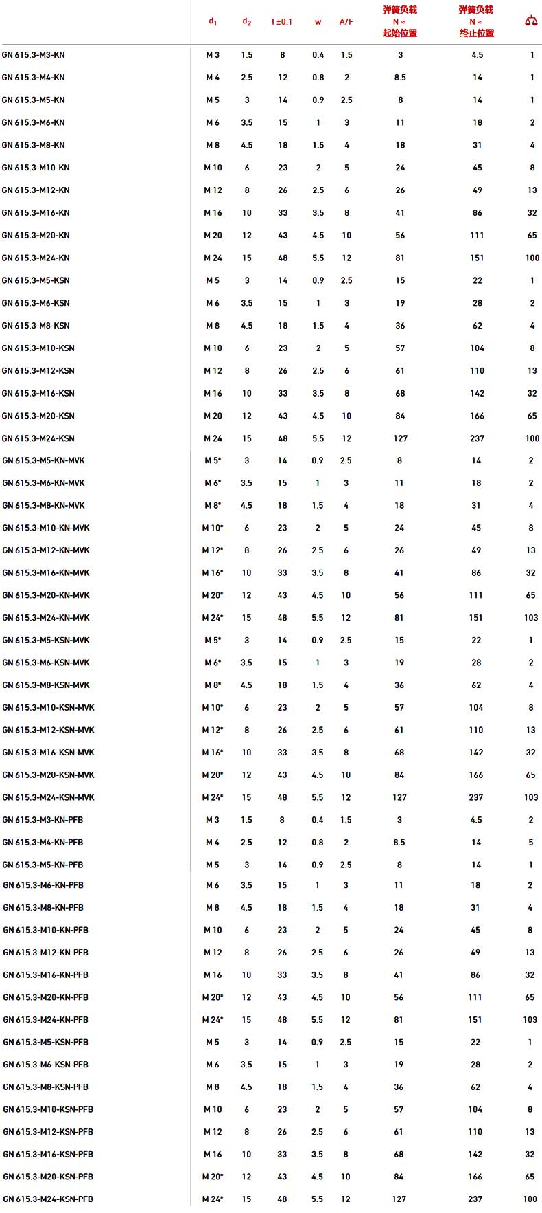 ·KN型:不锈钢,标准弹簧负载·KSN型:不锈钢,高弹簧负载