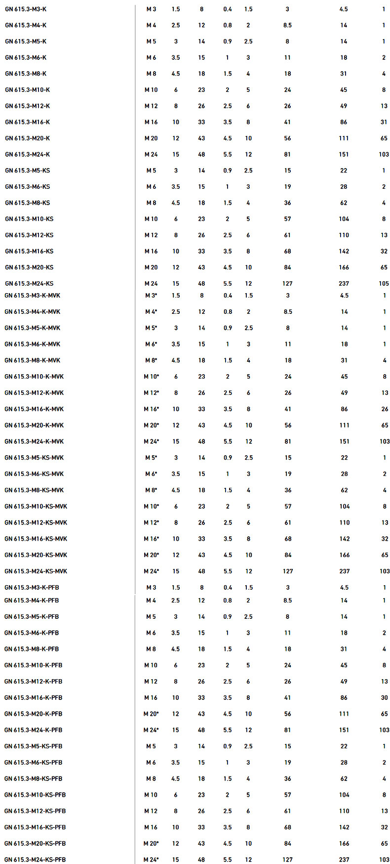 PFB涂层是阻滞性螺纹锁紧涂层(聚酰胶涂层)。K或KN型(标准弹簧负载)的涂层标示为蓝色,KS或KSN型(高弹簧负载)为绿
