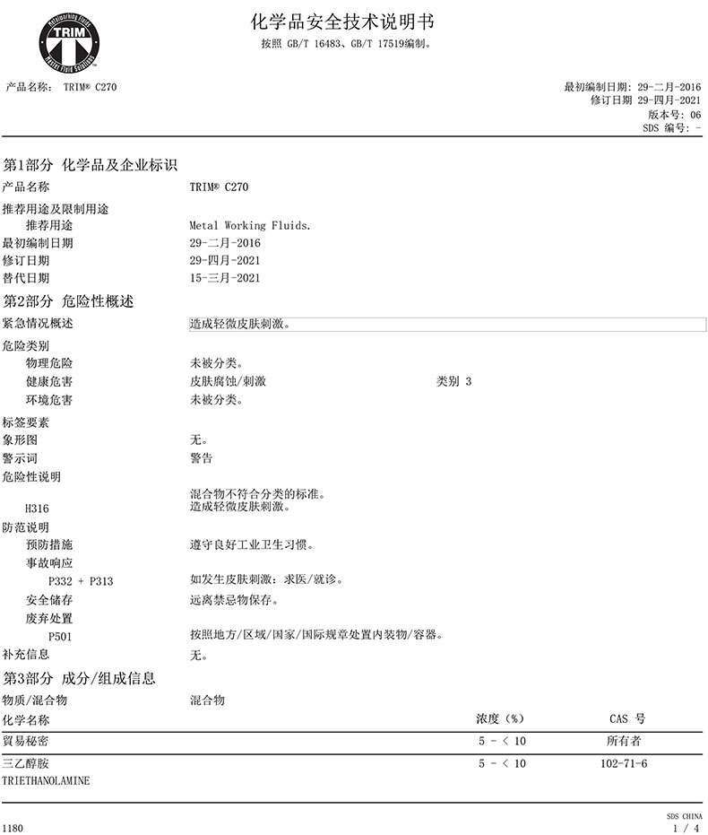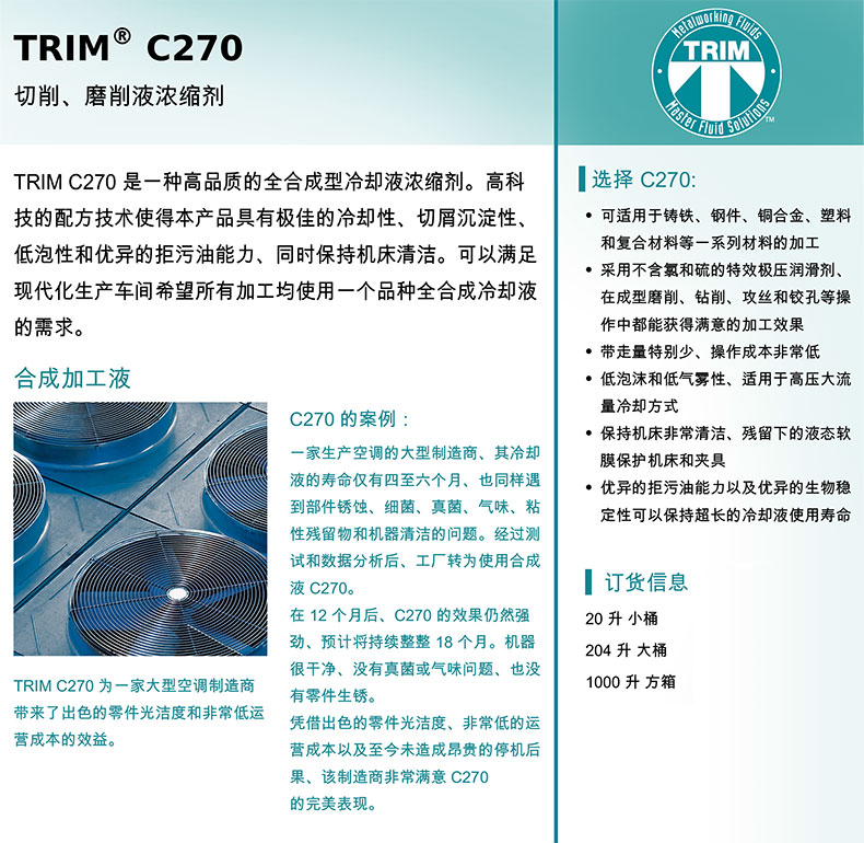 "马思特/Master 半合成黑色金属磨削液,TRIM® C270 204L 售卖规格:204升/桶"商品可能已被商家删除,您可查看其他相似商品!