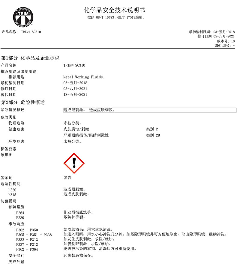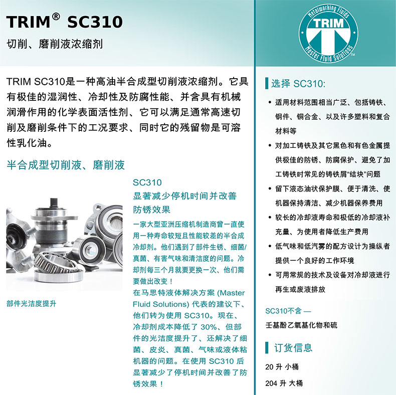 "马思特/Master 半合成黑色金属磨削液,TRIM® SC310 204L 售卖规格:204升/桶"商品可能已被商家删除,您可查看其他相似商品!