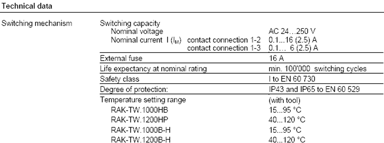 • Switching capacity contact connection 1-2: 16 (2.5) A, AC 250 V
