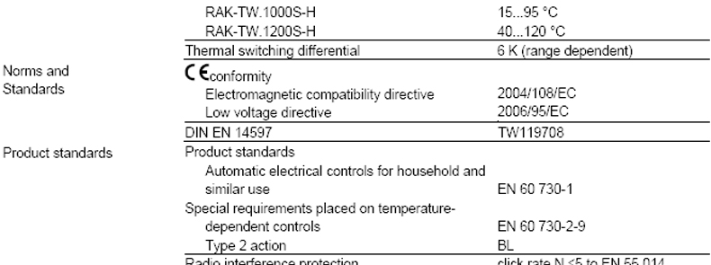 • Time constant conforming to DIN EN 14597