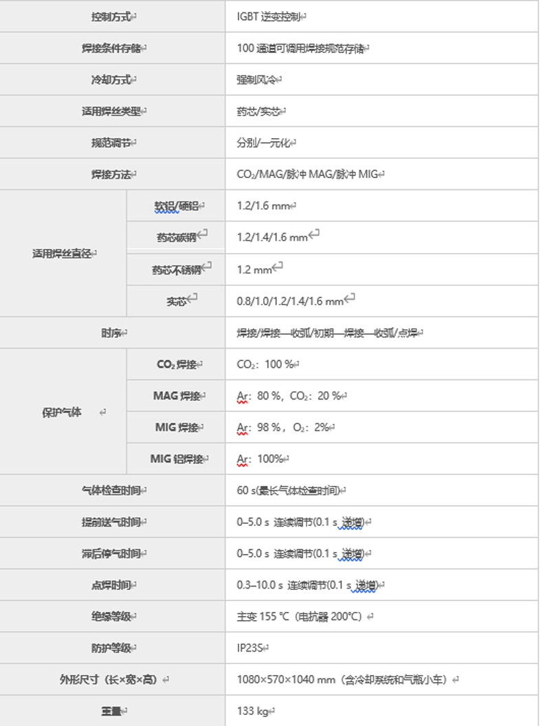 主要焊接方法:CO2, MAG,MAG 脉冲,MIG,MIG脉冲。