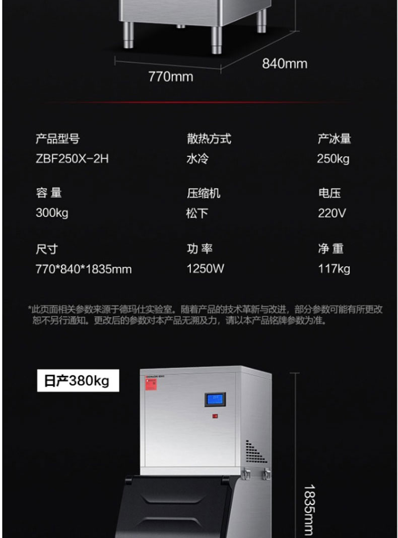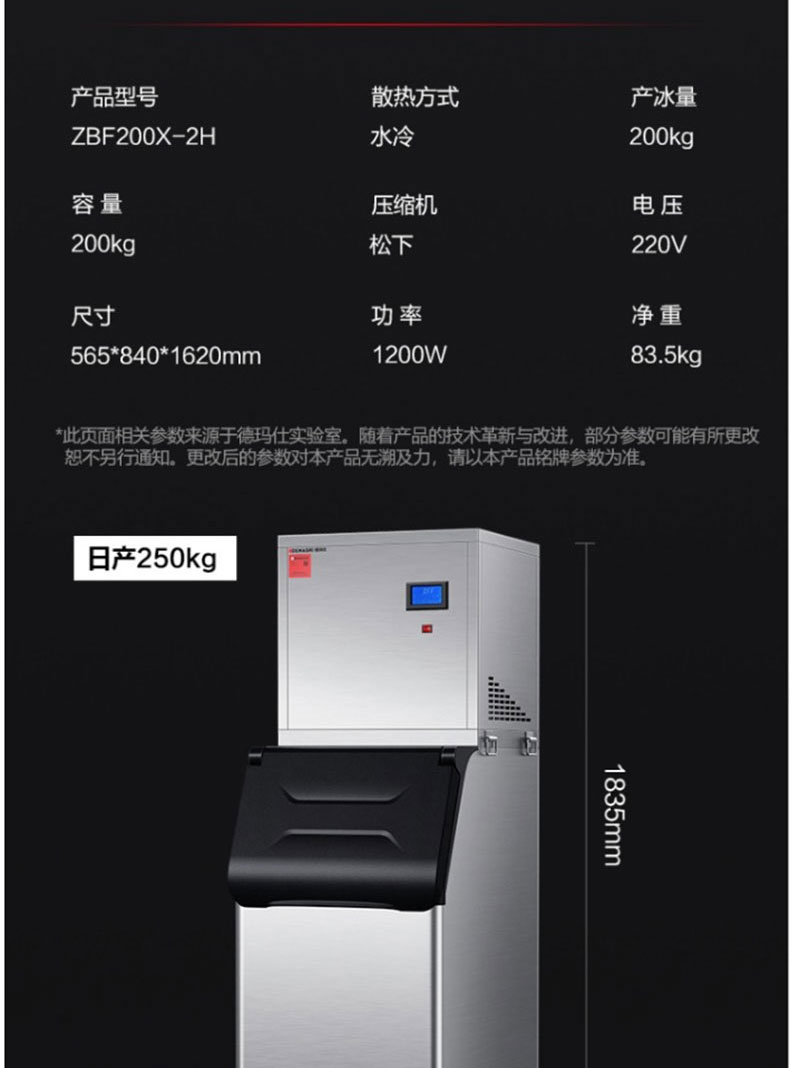 "德玛仕/DEMASHI 制冰机,ZBF250X-2H 最大日产250kg 售卖规格:1台"商品可能已被商家删除,您可查看其他相似商品!