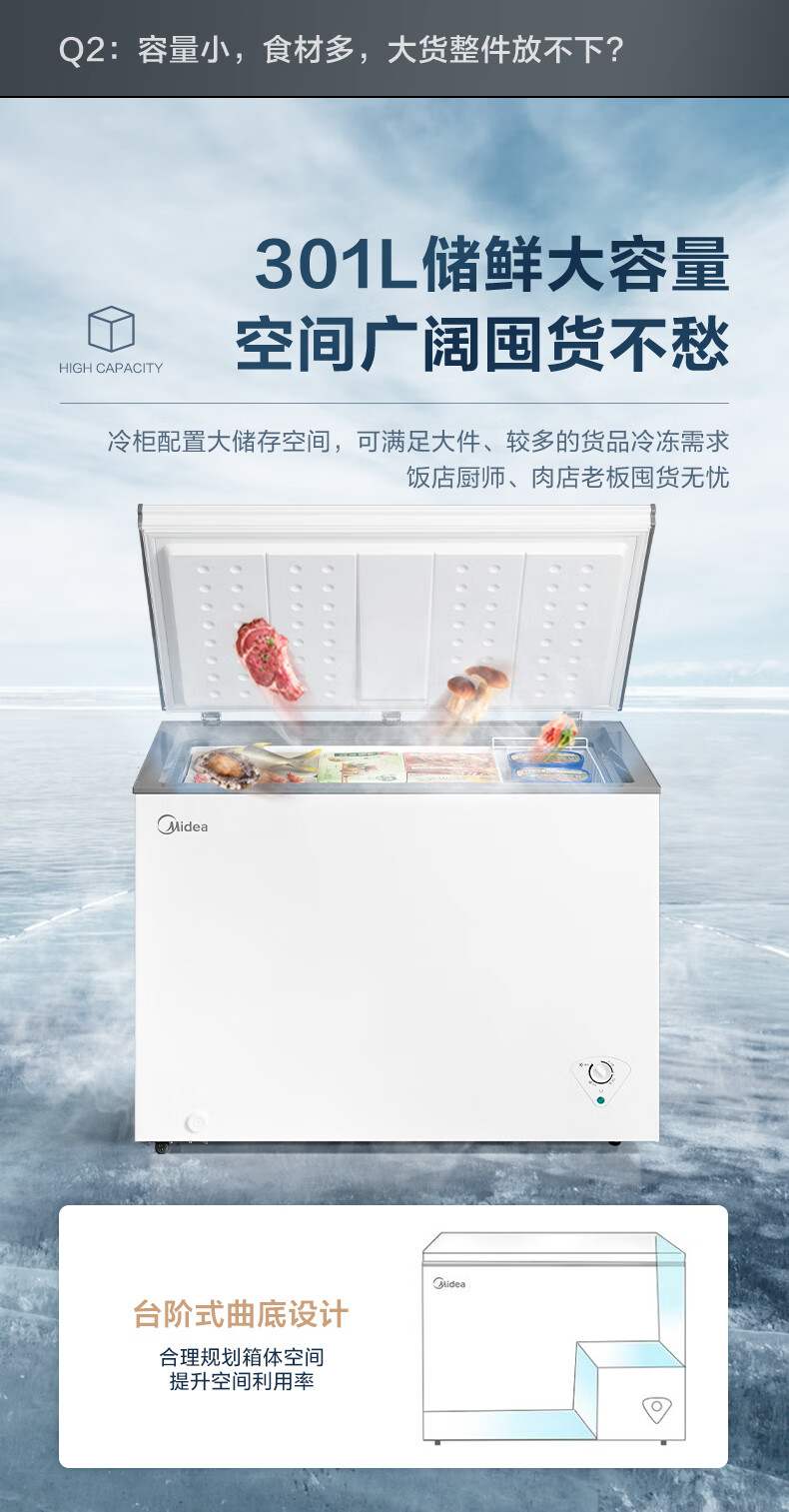 "美的 卧式顶开门单温冷藏冷冻转换柜,BD/BC-301KM(E) 售卖规格:1台"商品可能已被商家删除,您可查看其他相似商品!