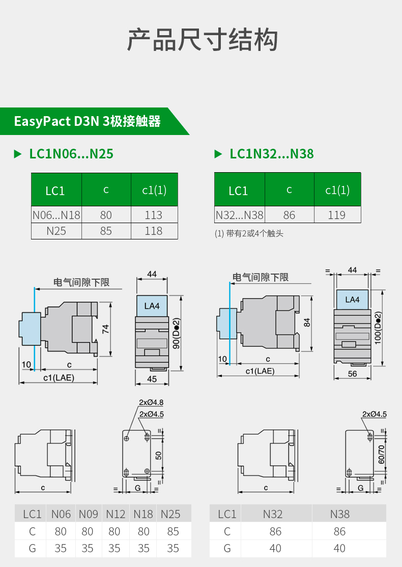 "施耐德 EasyPact D3N(LC1N)系列四极交流控制接触器,LC1N38008E7N 50A AC1 (2NO2NC) 48V 50/60Hz 售卖规格:1个"商品可能已被商家删除,您可查看其他相似商品!