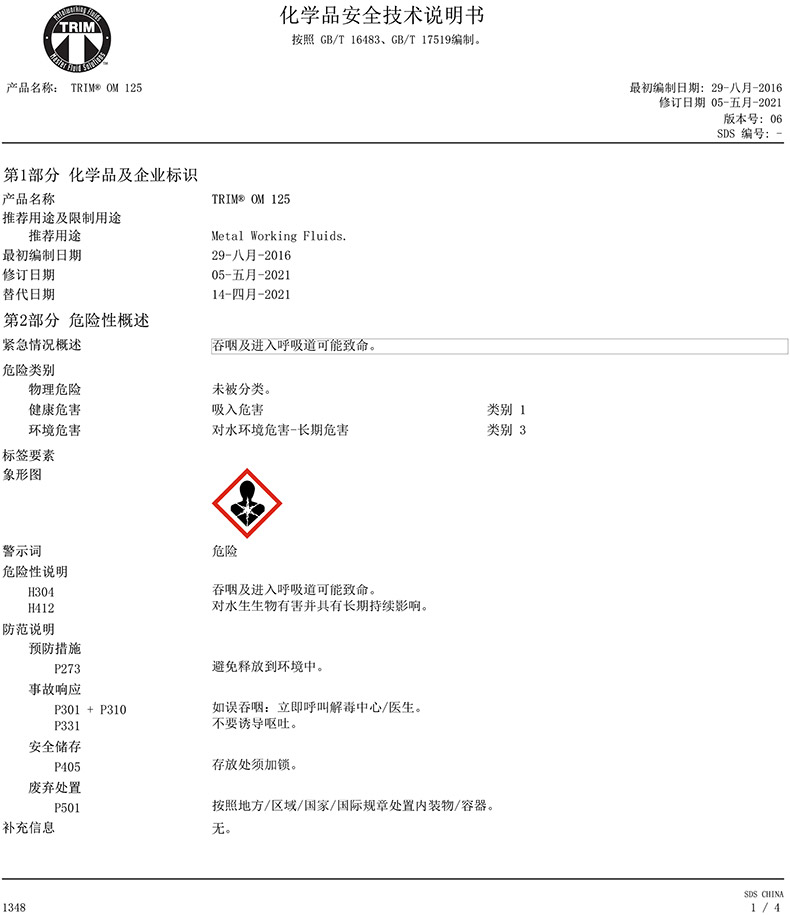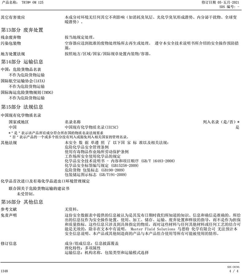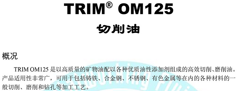 "马思特/Master 高润滑加工油,TRIM® OM125 20L 售卖规格:20升/桶"商品可能已被商家删除,您可查看其他相似商品!