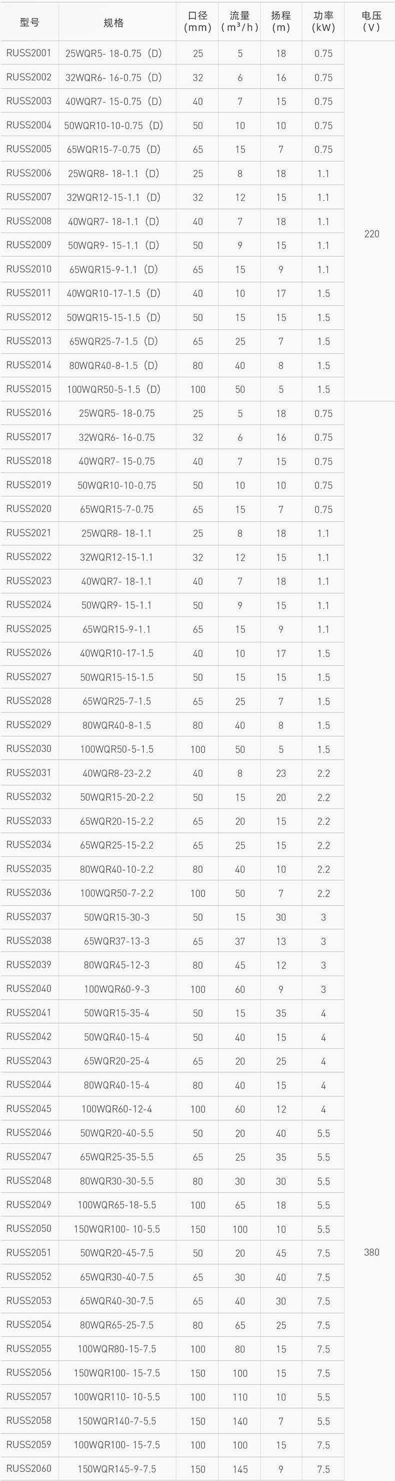 "Raxwell WQR耐高温型排污泵,RUSS2015,100WQR50-5-1.5(D) 220V,DN100,法兰连接,电缆长度7米 售卖规格:1台"商品可能已被商家删除,您可查看其他相似商品!