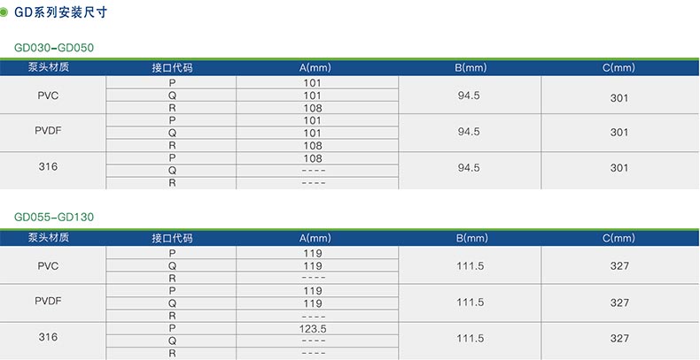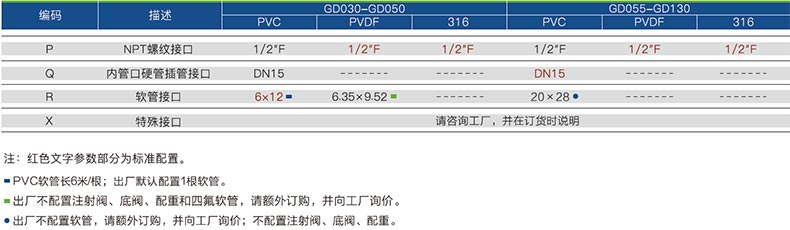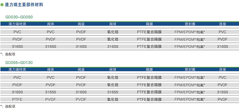 PVC、PVDF、316SS等多种泵头材质可选,适合输送各种物料。