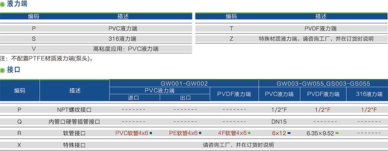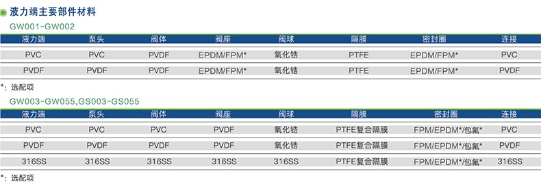PVC、PVDF、316SS等多种泵头材质可选,适合输送各种物料