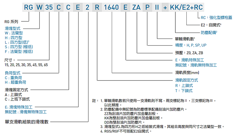RG系列以滚柱型滚动体取代了钢珠,为实现超高刚性与超重负荷能力而设计;透过滚动体与滑轨与滑块的线接触方式,让滚动体在承受高负荷时仅仅形成微量的弹性变形,更藉由45度的接触角度的设计,让整体直线导轨达到四方向等高刚性、等高负荷能力的特性表现。透过超高刚性的实现,可大幅提升加工精度,达到高精度的要求;由于超重负荷的特性,进而延长直线导轨的使用寿命。 |