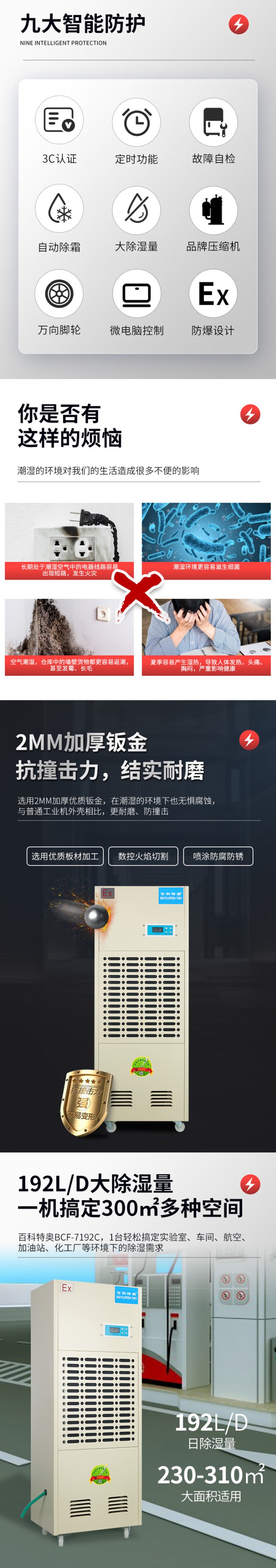 百科特奥 防爆除湿机,BCF-7192C ,除湿量192L/D,380V,适用面积230-310㎡,防爆等级ExdIIBT4 售卖规格:1台