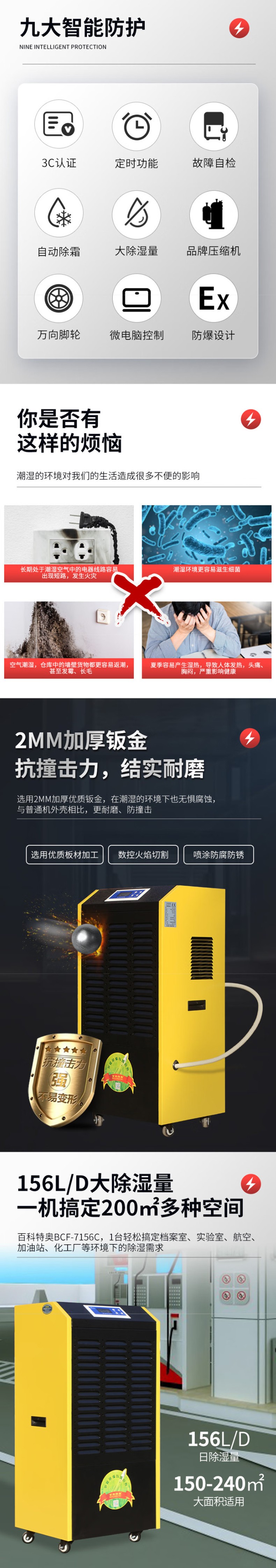 百科特奥 防爆除湿机,BCF-7156C ,除湿量156L/D,380V,适用面积150-240㎡,防爆等级ExdIIBT4 售卖规格:1台