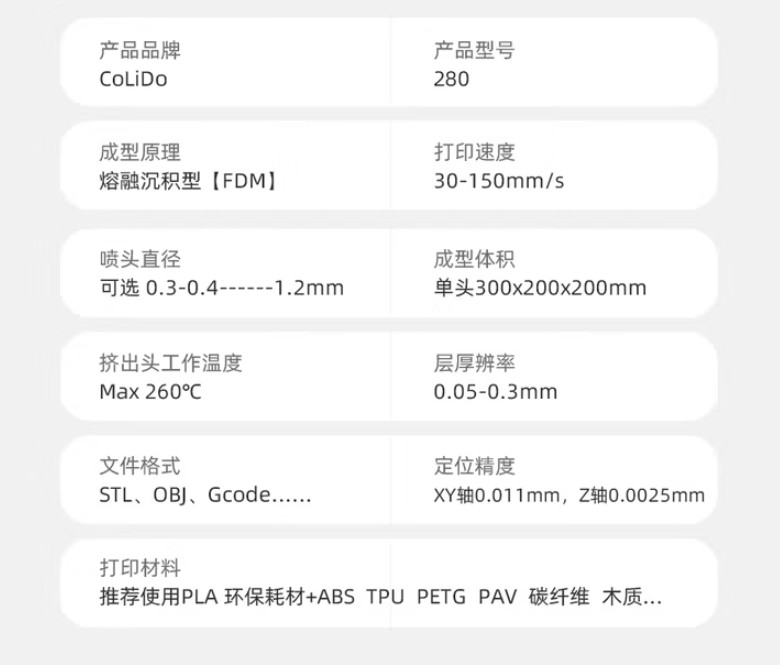 天威/PrintRite 3D打印机,CoLiDo 280 黑色 售卖规格:1台