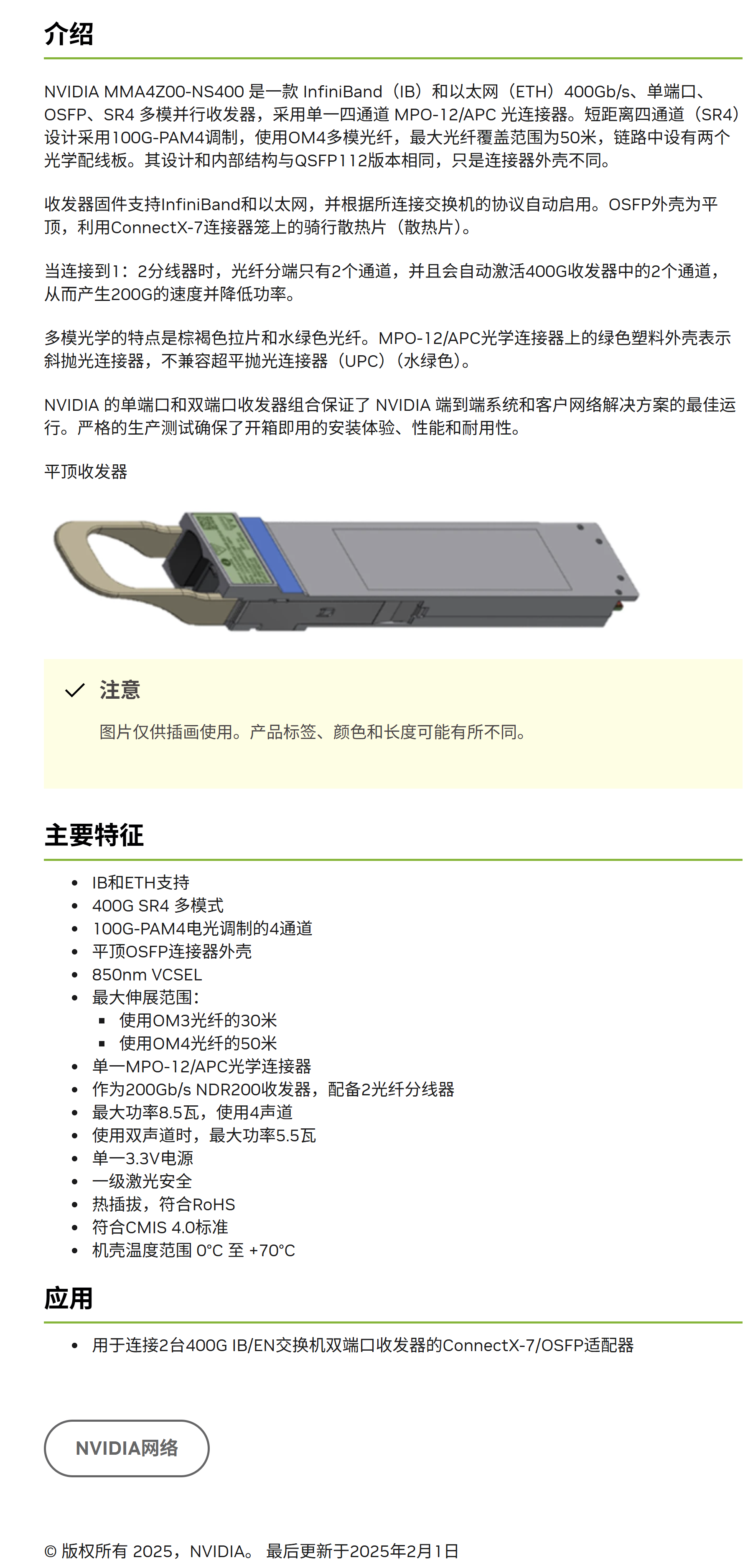 "珑京Mellanox模块 MMA4Z00-NS 400G模块"商品可能已被商家删除,您可查看其他相似商品!
