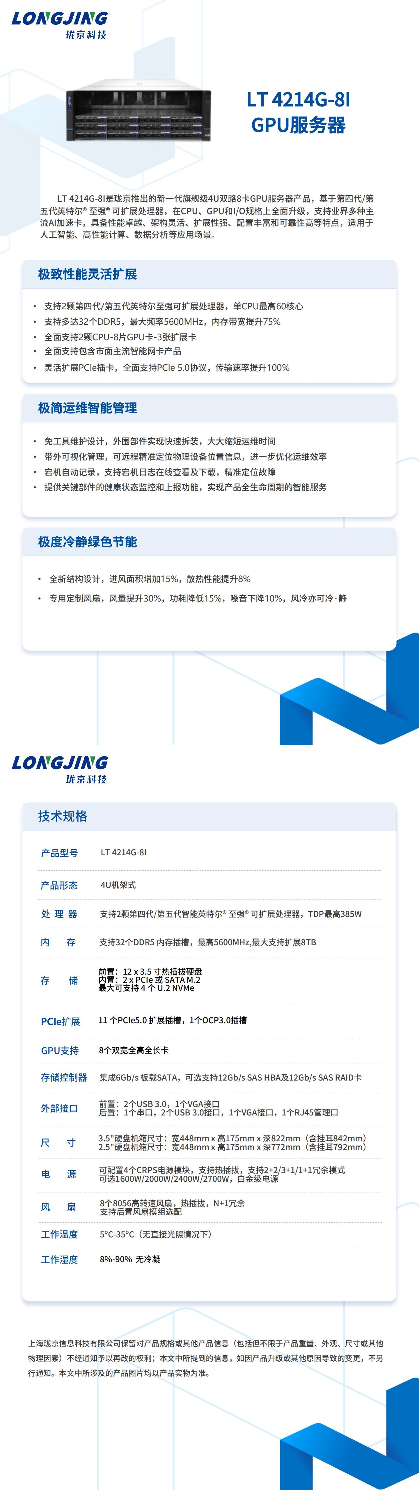 "珑京 LT 4214G-8I 八卡GPU机架式服务器四/五代至强4090/5090 深度学习图形渲染AI训练推理deepseek模型部署"商品可能已被商家删除,您可查看其他相似商品!