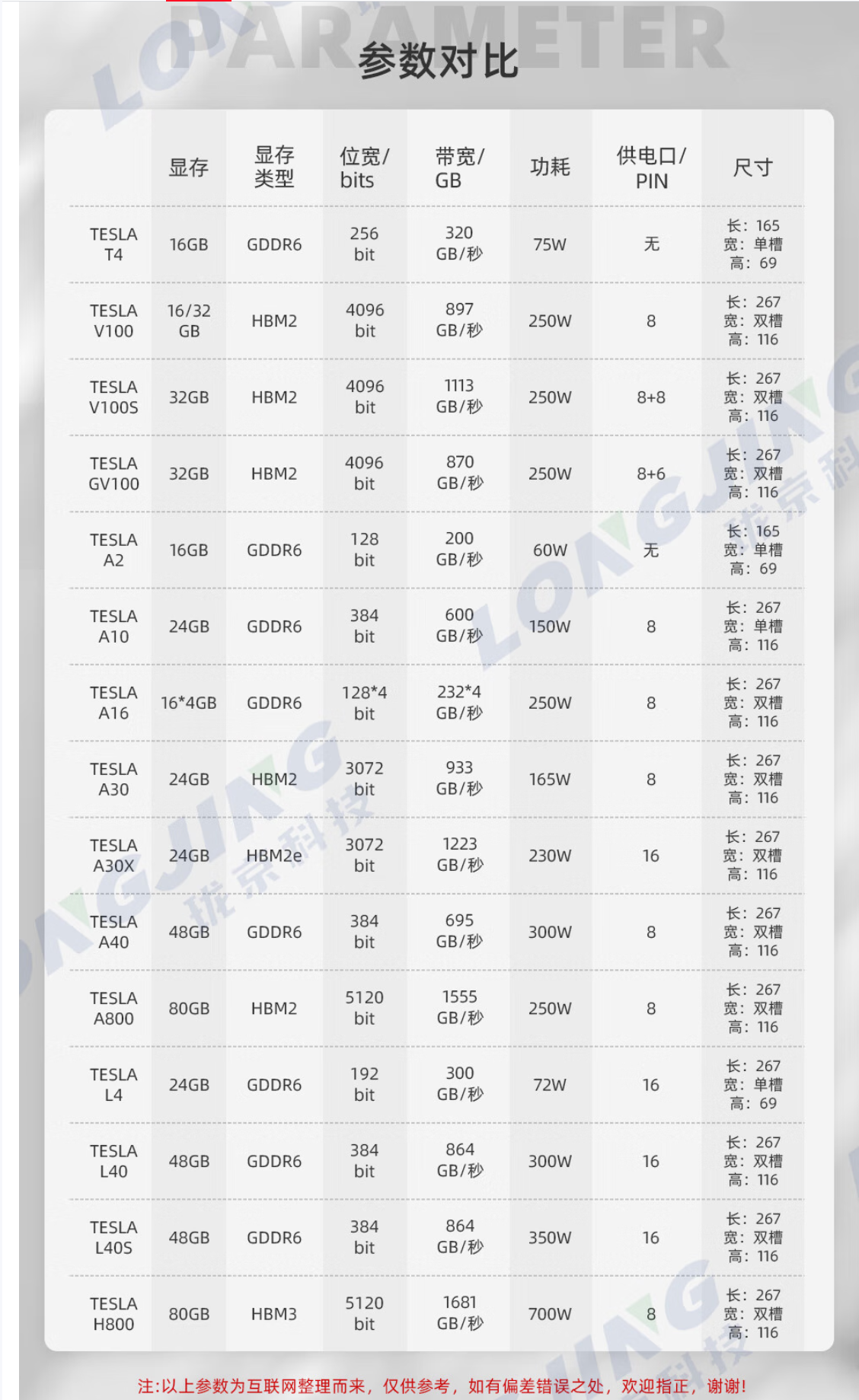 适配机型/耗材 : 珑京 NVIDIA A100 80G |