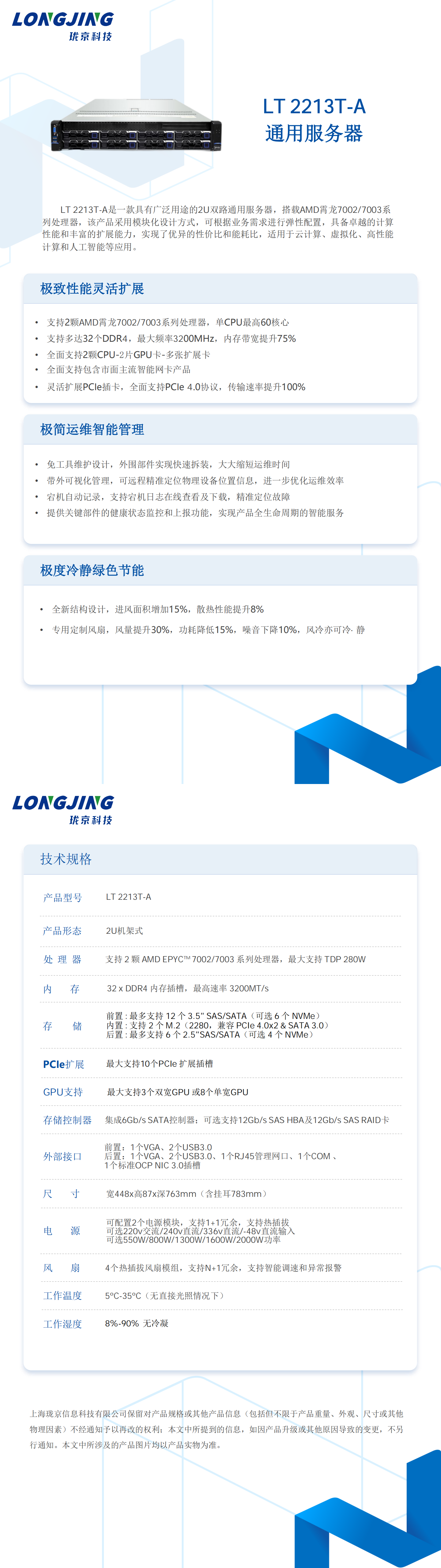 "珑京 LT 2213T-A通用机架式服务器 双路三代霄龙 深度学习图形渲 染AI训练推理deepseek模型部署"商品可能已被商家删除,您可查看其他相似商品!