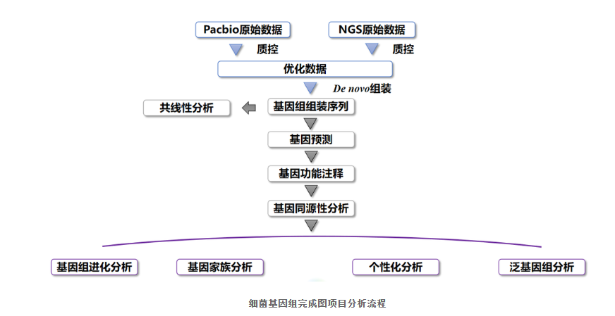细菌基因组完成图测序,即从头测序,是指不需要任何现有的序列信息就可以对某个细菌物种进行测序,利用生物信息学分析手段对序列进行拼装,从而获得该细菌物种的基因组序列。并可基于细菌基因组完成图开展基因功能注释、比较基因组学及泛基因组研究。